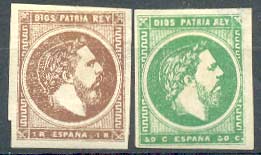 . В Испании во время гражданской войны (1872—76) карлисты — сторонники короля Карлоса — заняли ряд провинций. В 1873—75 вып. марки с портретом Карлоса и надписью (исп.) «Испания». Имели хождение только на тер. провинций, для междунар. отправлений не допускались. "Карлистские марки"