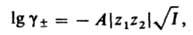 Для водных р-ров при 25°С А = 0,51. Согласно правилу Льюиса-Рендалла, коэф. активности данного типа ионов не зависит от типа др. присутствующих в р-ре ионов, а зависит только от ионной силы р-ра.