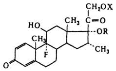 17-Валерат Д. (в ф-ле X = Н, R = СОС4Н9) - бесцв. кристаллы; т. пл. 181-183 °С; не раств. в воде, хорошо раств. в ацетоне, СНСl3 и этаноле. Этот эфир активнее Д. при местном применении (в виде мазей). Г. С. Гриненко.