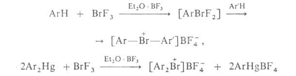 — 70 °С) конденсацией BrF3 или ArBrF2 (в присут.