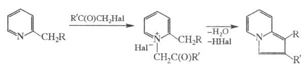 к-рые иногда также наз. его именем: 1) синтез производных индолизина действием -галогенкарбонильных