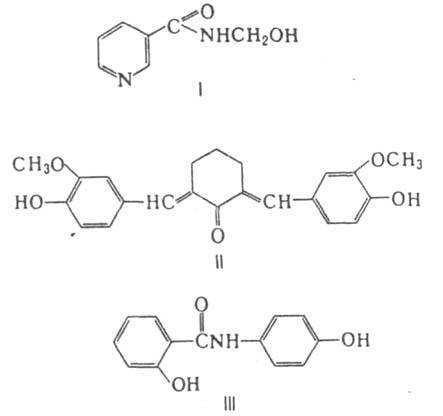 (холатов). К этим Ж. с. относятся сами желчные к-ты (напр., дегидрохолевая) и содержащие их препараты (холензим, аллохол и др.), ряд синтетич. соед., напр., никодин (ф-ла I), циквалон (II), оксафенамид (III), феликур (1-фенилпропанол), а также в-ва растит. происхождения, содержащие флавоны, витамины и эфирные масла, - берберин