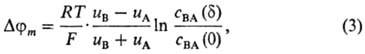 т. наз. диффузионный потенциал (приближение Планка): где uА,