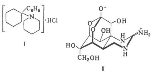 (фенциклидин, или сернил; ф-ла I), вызывающие состояние наподобие шизофрении. Изучены нейротропные прир.