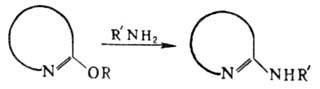 простые эфиры лактимов (циклич. имидаты): Выходы амидинов 70-85%. В случае первичных аминов