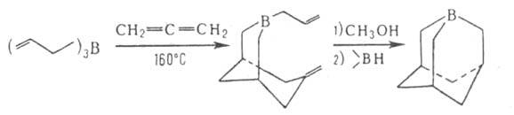где R = Н, D, Alk, Ar и др. При взаимод. триаллилборана с алленом получается 3-аллил-7-метилен-3-борабицикло[3.3.1]нонан,