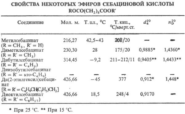 в моно- и диэфиры. Соли и эфиры С.к. наз. себацинаты (см. табл.). При восстановлении