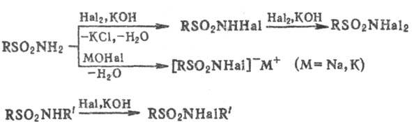 или N,N-дигалогенсульфамидам; соли N-гa-логенсульфамидов широко применяют