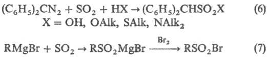 действие SO2 и галогена на реактивы Гриньяра приводит к сульфонил-галогенидам