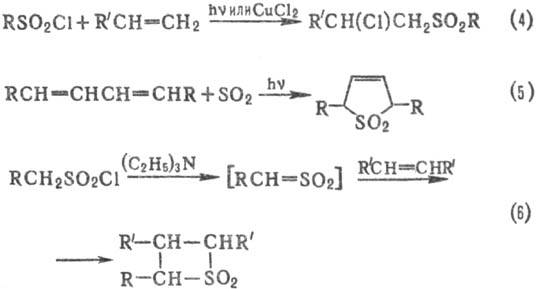SO2 к диенам (5); взаимод. сульфенов, генерируемых из алкансульфонилхлоридов,