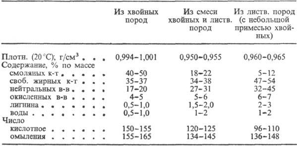 жирных к-т Т. м. из древесины хвойных пород 85-88%, листв. пород 64-68%. Нейтральные