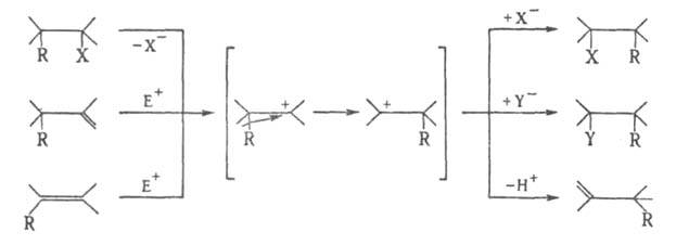 арил, ацил, алкоксикарбонил и др.) к карбкатионному центру, возникающему