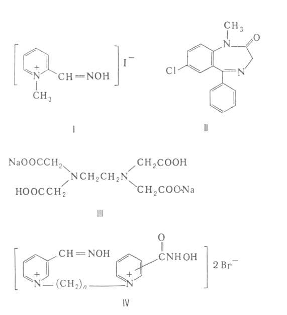 действующие на тормозные синапсы, в к-рых медиатором является 5) Способствующие выведению токсичных соед. из организма, гл. образом комплексоны-тетацинкальций (кальцийдинатриевая соль этилендиаминтетраацетата), трилон Б (III) и др. Эти соед. с катионами тяжелых металлов и нек-рыми РЗЭ образуют устойчивые комплексы, к-рые хорошо раств. в воде и относительно быстро выводятся из организма. Применяются также при поражениях радиоактивными изотопами. Нек-рые А. обладают смешанным действием. Так, бисаммониевые соед. ф-лы